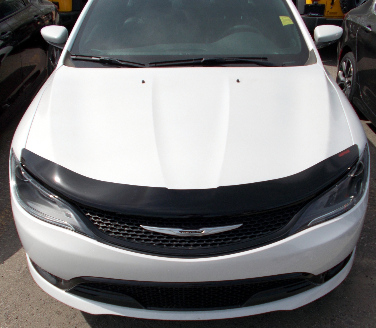 - Modern hood protector styling. Extra low profile. Black 3mm high gloss acrylic.